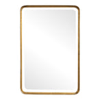 This Vanity Mirror Features A Petite, Yet Deep Metal Band Surrounding An Offset Inner Ledge Finished In A Lightly Antiqued Gold Leaf. Mirror Has A Generous 1 1/4" Bevel And May Be Hung Horizontal Or Vertical.
