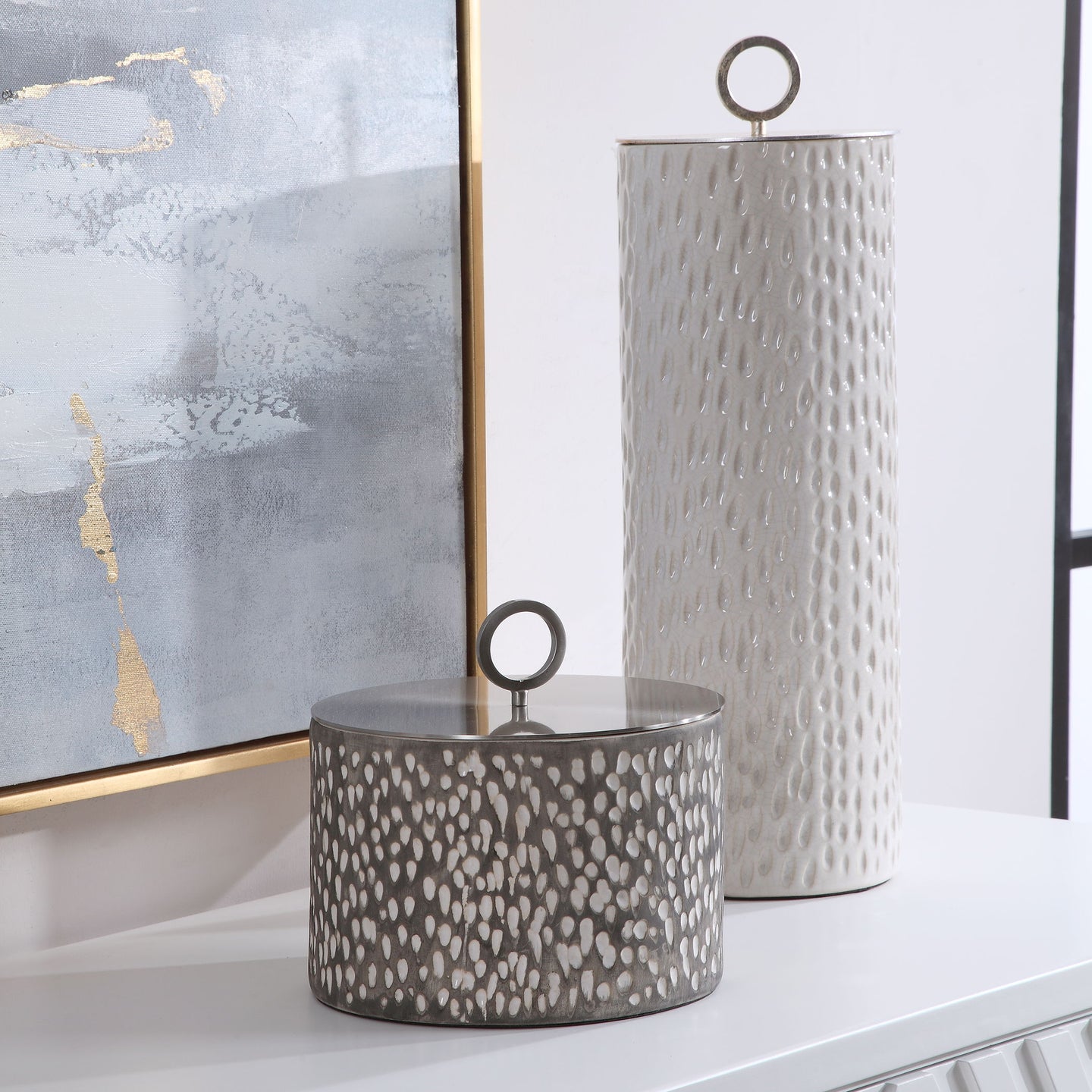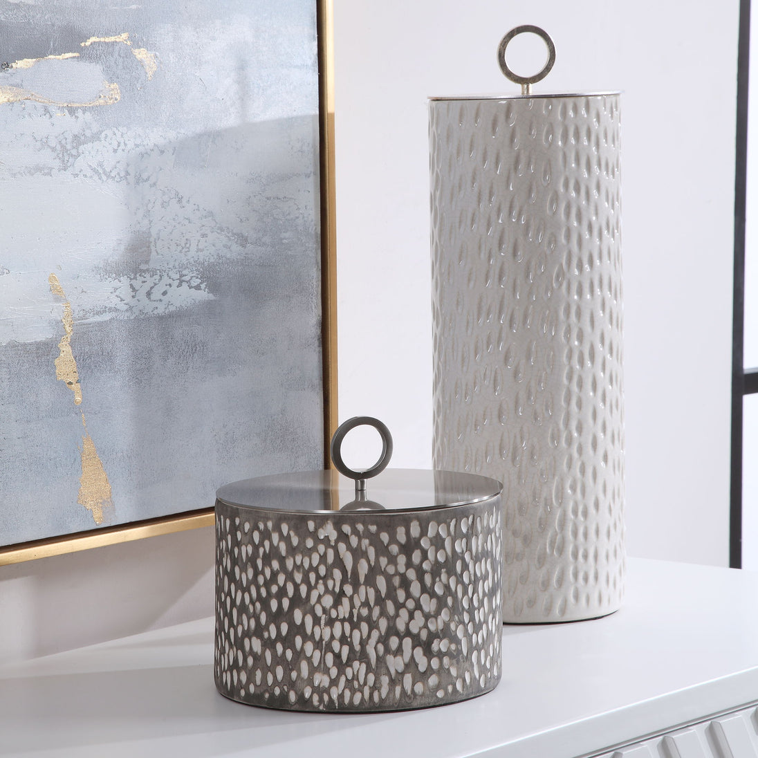 Cyprien Ceramic Containers (Set of 2) Pearl Silver