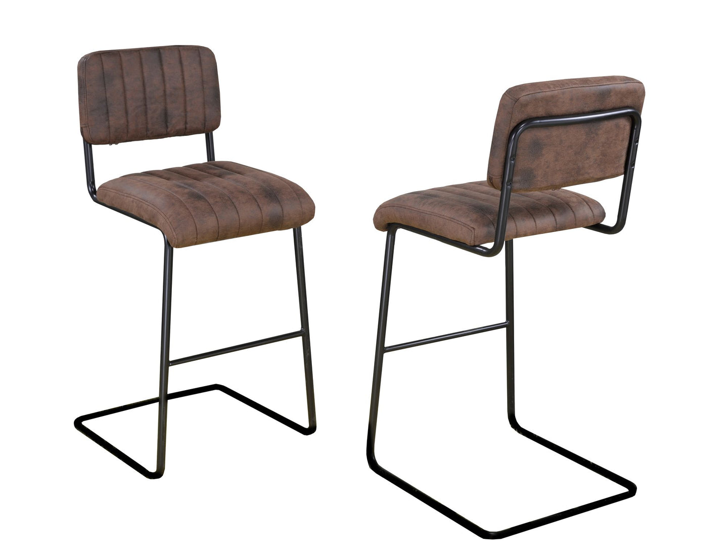 Combining understated elegance and comfort, this set of two bar-height stools bring stylish seating to your kitchen or home bar. Made for both fashion and function, the stools feature a sophisticated distressed brown colour scheme and rounded edges combined with painted frames for a look that effortlessly fits with a range of home decors. Stitch-striped chair backs and interior bottom frame design add visual interest, while sturdy black powder coated steel frames and premium textured polyester fabric covers provide long-lasting durability. Designed to impress, these attractive Counter Stools make an eye-catching addition to any living space.