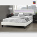 Awake or asleep, you love to enjoy the finer things in life. This panel-style queen-size bed is wrapped in rich & durable faux leather fabric that features a multi-colour LED lighted headboard with remote control. It has a modern shape that is clean and refined, and combines comfort and style effortlessly. Low, splayed legs raise the platform slightly while allowing the contemporary appeal to shine through. A full slat system provides the support needed for your mattress, which means you can finally say goodbye to that old box spring. Easy access lift storage offers ample space to keep all your sleeping essentials neatly organized and within reach.
