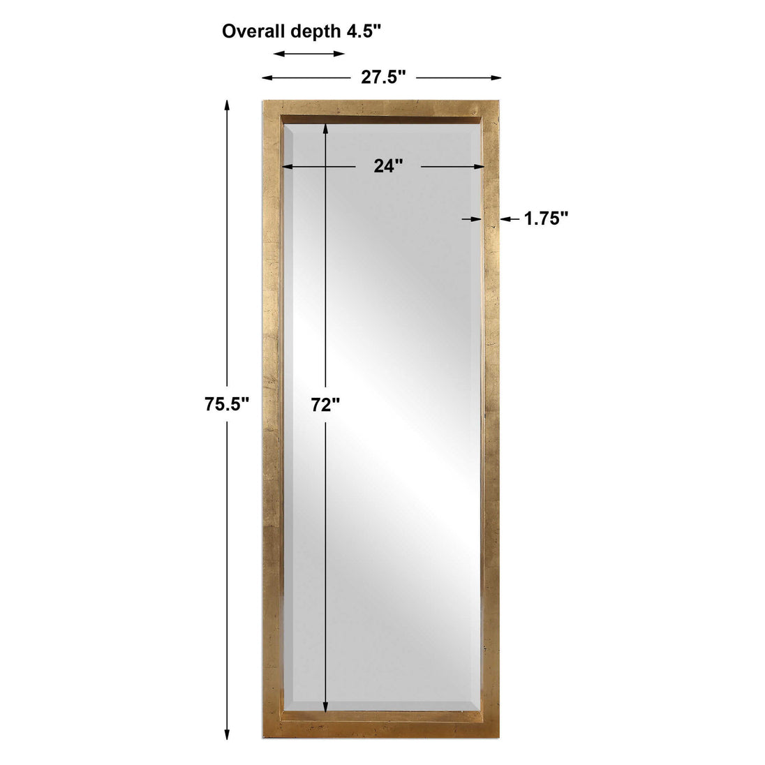 This Stately Mirror Features A Deep, Solid Wood Frame With A Lightly Antiqued Gold Leaf Finish. Mirror Has A Generous 1 1/4" Bevel And May Be Hung Horizontal Or Vertical.