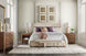 Designed for convenience and style, the Eleana Three Drawer Nightstand features Light Caramel walnut veneers, plated bronze hardware, and rounded corners. Its integrated charging station with dual outlets, along with three self-closing drawers, makes it both functional and luxurious for bedside storage.