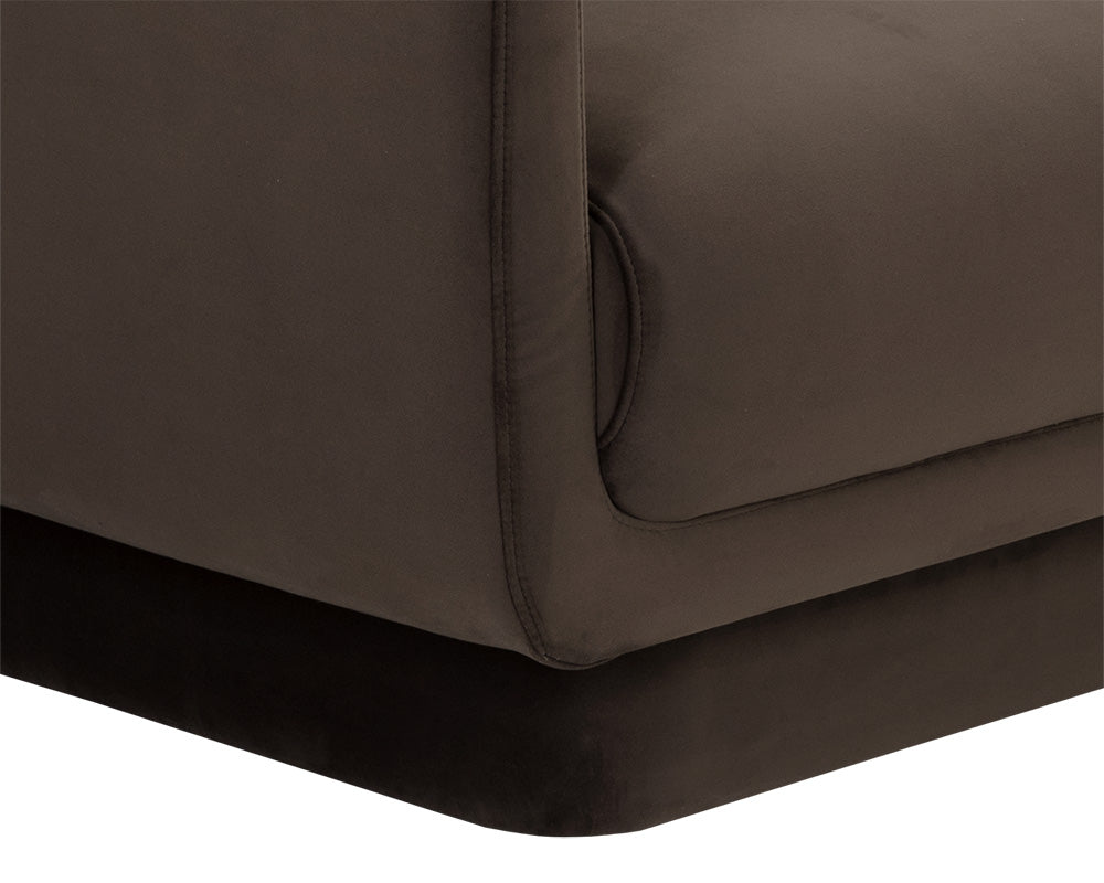 The Everton Sofa exudes classic comfort. Featuring a low profile with loose back cushions and rounded edges for a retro feel. This sofa is fully upholstered in smooth meg dark brown fabric for an inviting design that will captivate in any setting.