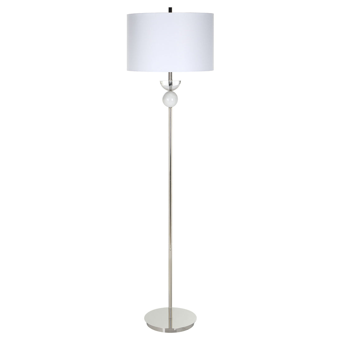 Sleek And Refined, This Contemporary Floor Lamp Showcases A Streamlined Iron Base In Polished Nickel With Natural White Marble And Crystal Accents. Paired With A Hardback White Linen Fabric Drum Shade.Product Features