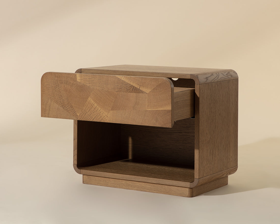 - Solid Oak Wood / Handcrafted Oak End Grain Veneer Doors / Finished Back / Soft Closing Doors / Cord Management Opening / Adjustable Shelves
