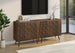 - Showcasing a mid-century modern aesthetic with solid wood legs and a unique checkerboard design on the 2 door cabinet, adding a touch of elegance to transitional spaces.