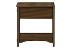 Are you looking to add a touch of style and sophistication to your bedroom or living room? Look no further than this 24-inch-high walnut veneer accent table! This fashionable and practical side table is durably designed to last for years. This accent table is easy to assemble with full illustrated instructions and all parts included, along with a 5 year limited warranty against manufacturer's defects. The easy to clean top makes it perfect for placing items such as a lamp, books, magazines along with a bottom shelf for added storage. The space saving design includes a storage drawer with a classic black metal pull handle to tuck away small essentials. The walnut brown veneer finish makes this end table design look timeless and transitional - perfect for any type of home decor. Whether you are looking for a narrow nightstand to add to your bedroom or as a side table next to a chair or sofa in your living room, this versatile accent table is the perfect solution!