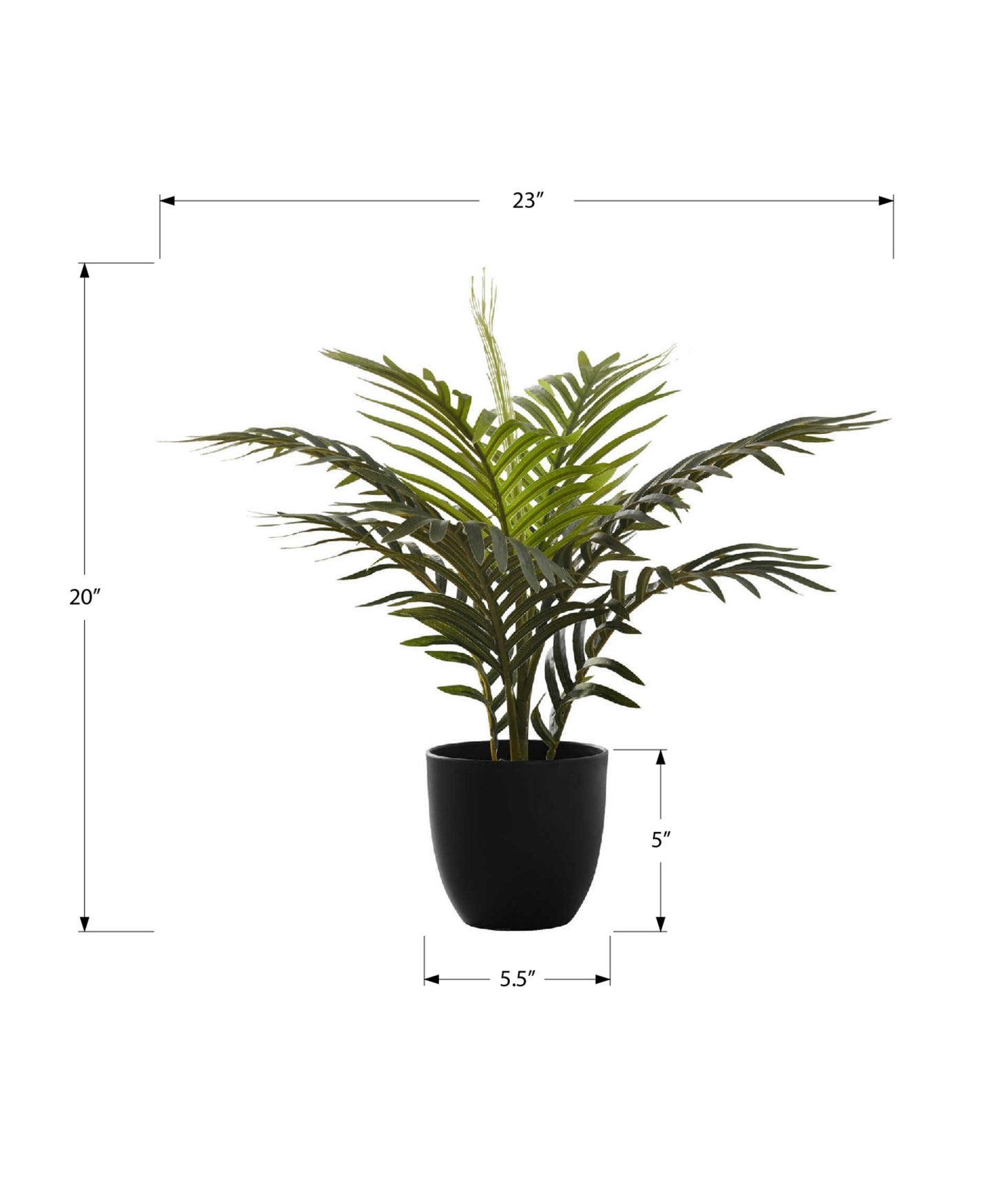 - Add a vibrant burst of greenery to any space with this 20" tall artificial indoor palm plant in a black pot