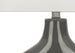 - A contemporary and stylish 25"H table lamp featuring a unique two-leg shape dark grey ceramic base, topped with a classic ivory fabric shade and a round silver metal finial.