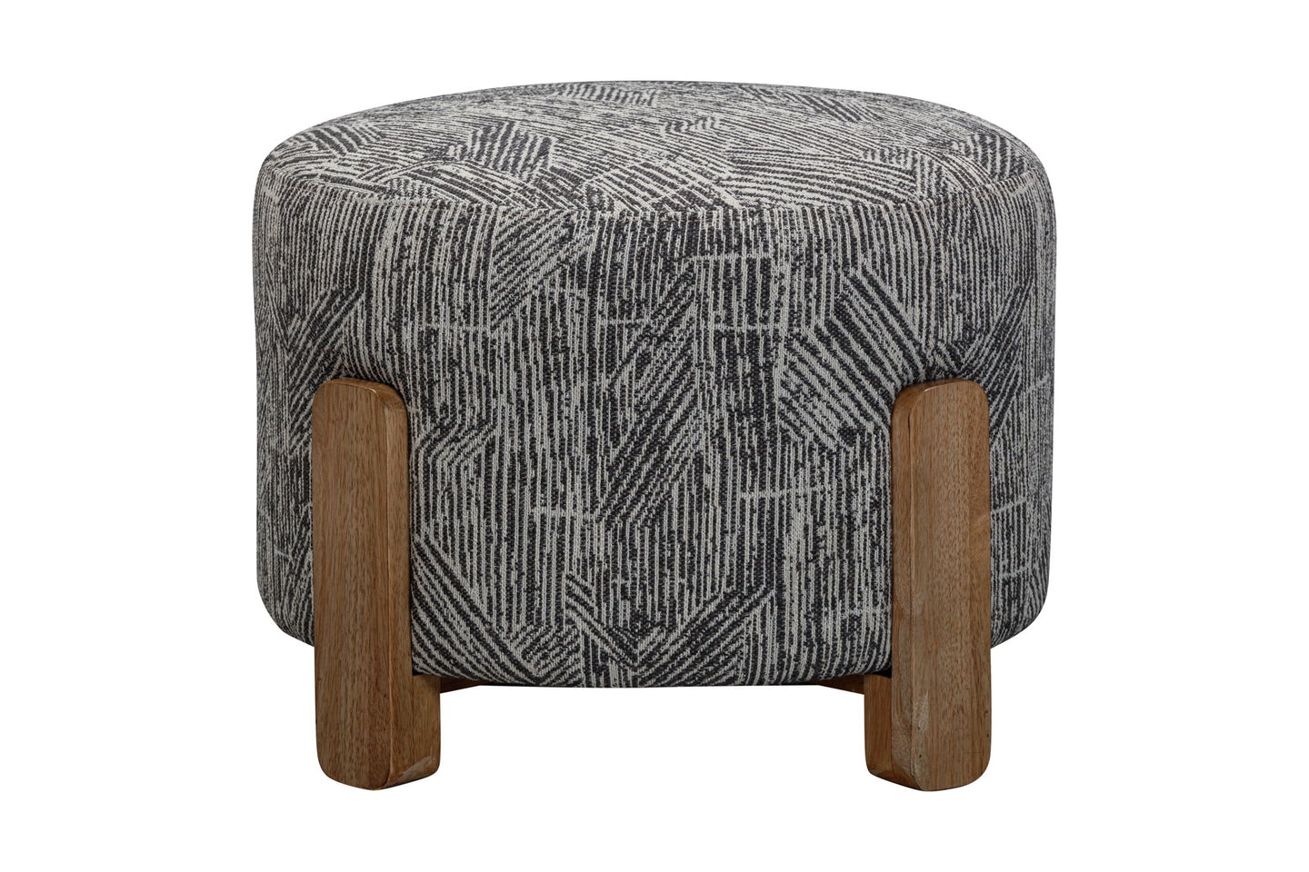The Jasper accent ottoman features a blend of modern and traditional style influences with multi-functional use as ottoman and stool and featuring an exposed wood base in a natural mango finish with a salt-and-pepper jacquard fabric that is 100% polyester for durability. Finish: natural, salt-and-pepper. Material: solid and manufactured wood frame, deep plush padding.