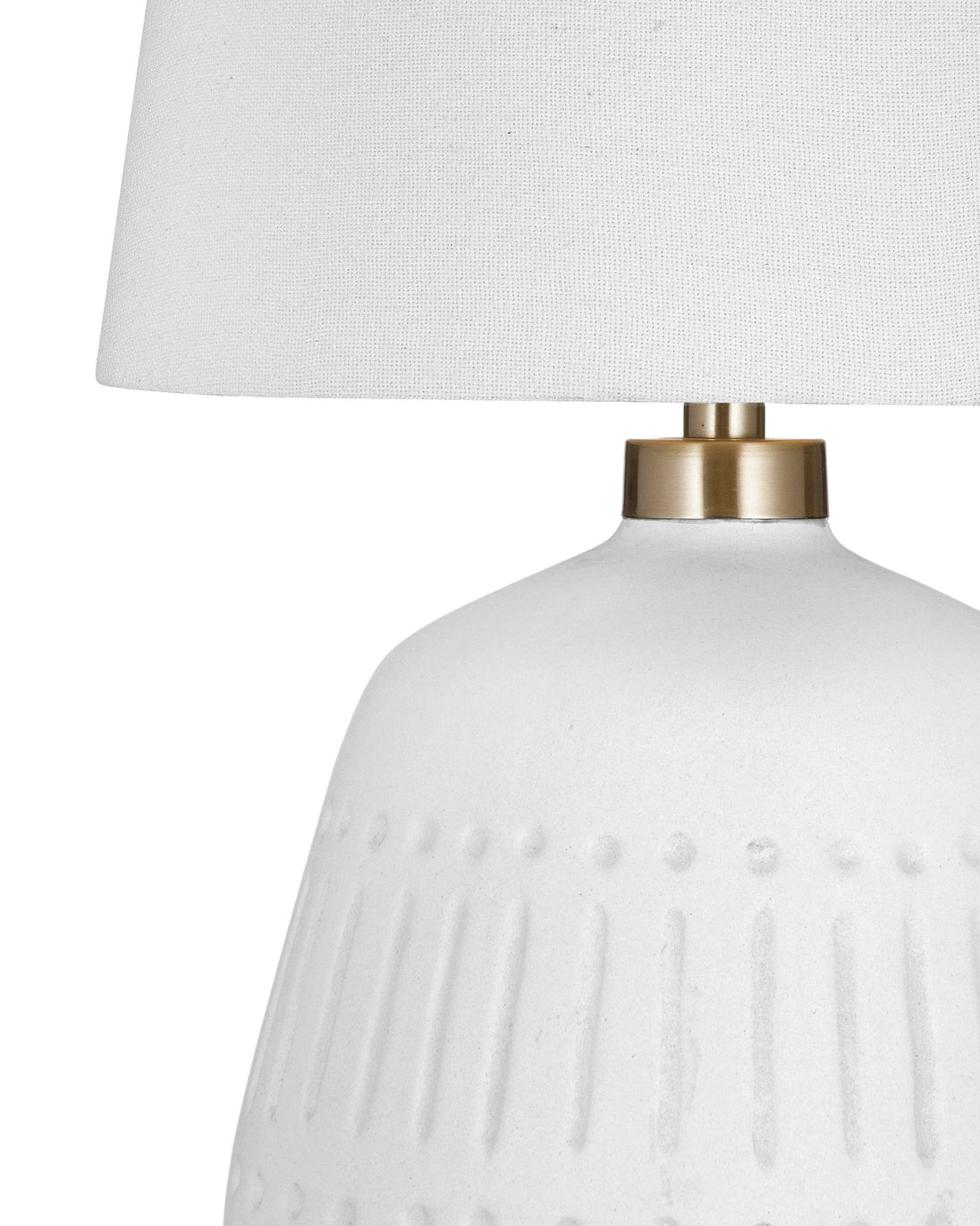 Embark on a journey of style with the Journey Table Lamp. Its matte cream ceramic base, adorned with etched detailing, exudes contemporary organic charm. The tapered drum-shaped lamp shade, crafted from black cotton slub, adds a touch of elegance to your space. Customize your lighting experience with the 3-way turn knob switch, and with a generous 98-inch cord, you have the flexibility to place it wherever it complements your decor. Illuminate your home with the subtle beauty of the Journey Table Lamp, a perfect blend of modern style and timeless sophistication.