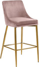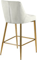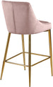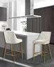 Yield to your contemporary side with this Karina Stool. This modern stool is counter height, making it an ideal addition to a home bar or eat-in kitchen counter. The velvet upholstery brings a neutral element to your room, so it can easily meld with other furnishings. Plump seat and back cushions ensure that guests sit comfortably, whether they're enjoying a sudsy brew or a stack of pancakes. The polished metal frame is sturdy and stout, adding a durable slant to this lovely stool.