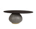 A true work of art, this contemporary coffee table draws attention with its sculptural base. Features a black glass top with a unique dark grey concrete base that is rich with texture. Completed with a powder coated brass metal rim on the base. Group together with the coordinating end table for added intrigue.