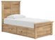 Makidern - Twin Panel Storage Bed With 2 Under Bed Storage Units - Tan