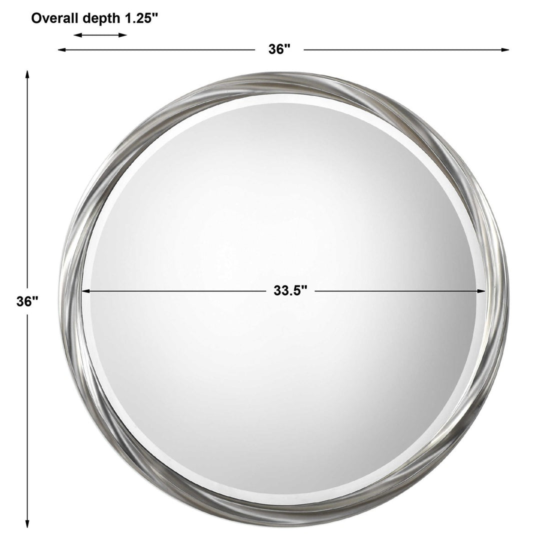 This Contemporary Design Features A Twisted Motif With A Hand Applied Metallic Silver Leaf Finish. Mirror Has A Generous 1 1/4" Bevel.Product Features