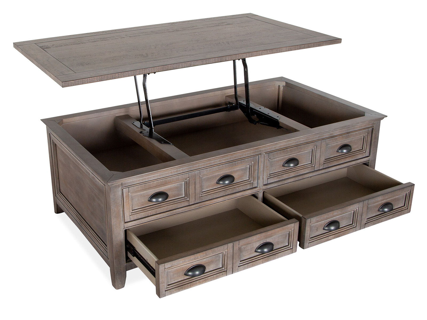 Paxton Place - Lift Top Storage Cocktail Table With Casters. 1 lift top. 2 drawers with appearance of 8 drawers ,including 1 top faux drawer. Tinted drawers with french dovetail in front & english in back. Side mount ball bearing guides. Casters. Floor protectors.