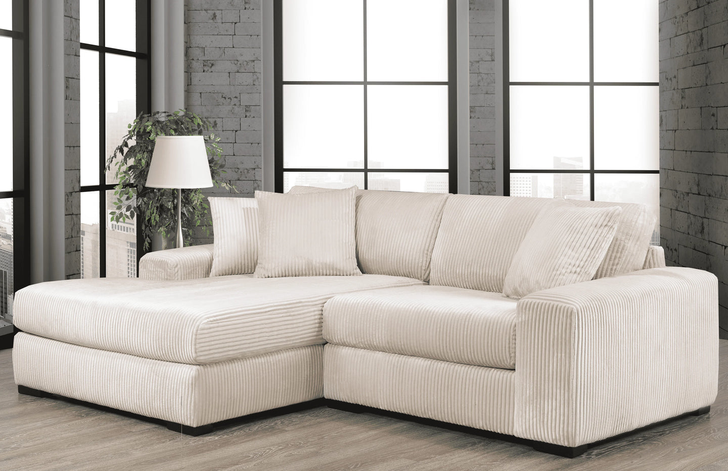 Elevate your living space with the Stacey 2-Piece Sectional, where modern sophistication meets irresistible comfort. Designed to make a statement, this plush sectional features a soft, cloud-like texture that invites you to sink in and stay awhile. Its deep, supportive cushions and low-profile silhouette create a relaxed yet refined look—perfect for contemporary homes that value both style and comfort.