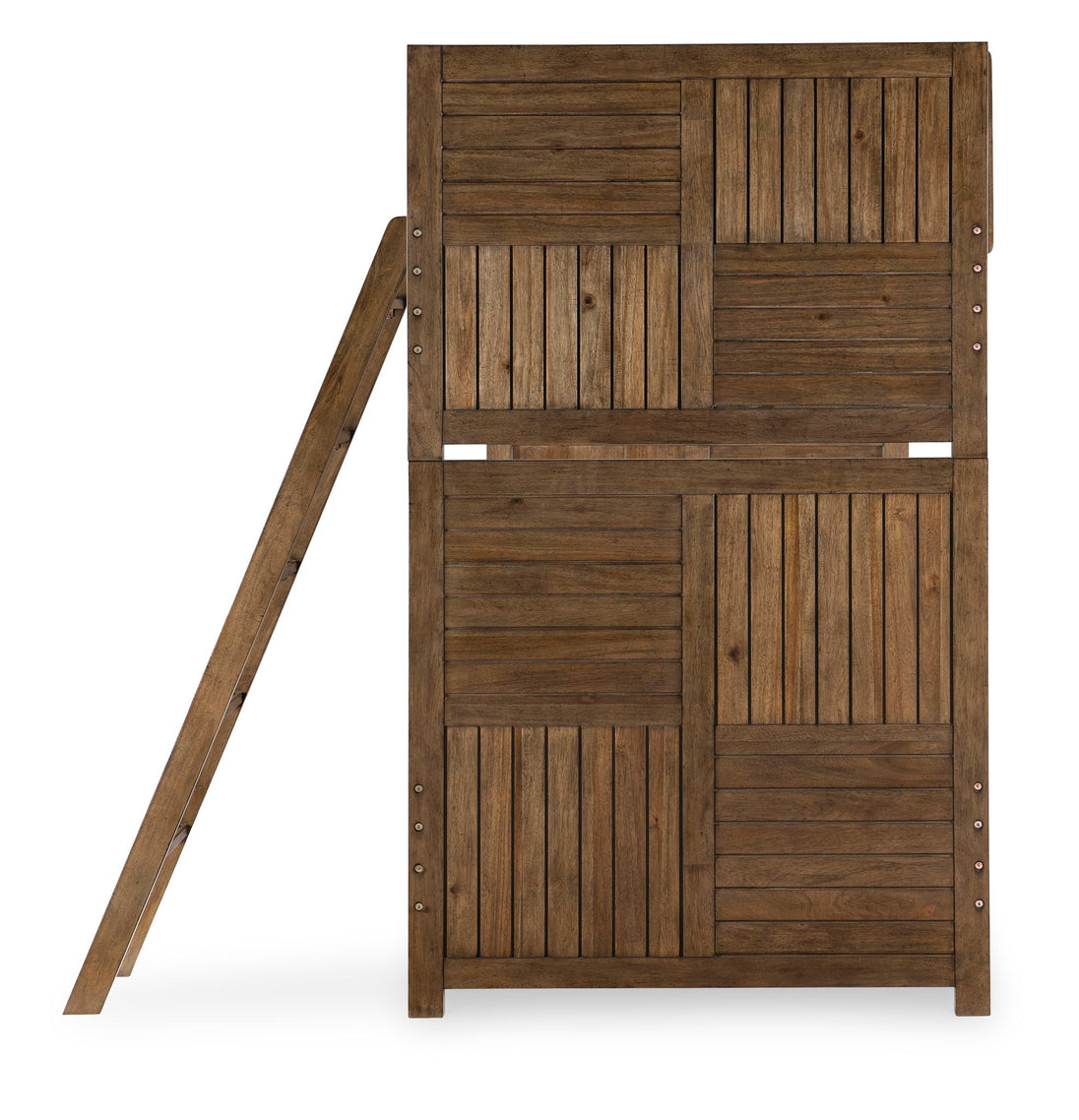 Summer Camp Bunk requires Ladder, but for room planning size without Ladder is: 57x80x70 Summer Camp is a youth bedroom group that captures the look and feel of being away at camp. This group offers plenty of options for sleep, study and storage with lots of style. Straight lines, plank details on sides and drawer fronts and thick tops all add a modern rustic appeal to the look of the group. Bed styles include a Panel Bed in twin and full sizes, and Bunk Bed offered in twin over twin and twin over full. Case items include dresser, nightstand, chest, and desk set. Scaled to fit youth, vacation homes and 2nd bedrooms, Summer Camp is sure to fit many looks and sizes of rooms. Features such as motion activated lights on nightstands creative storage options add function to this collection.