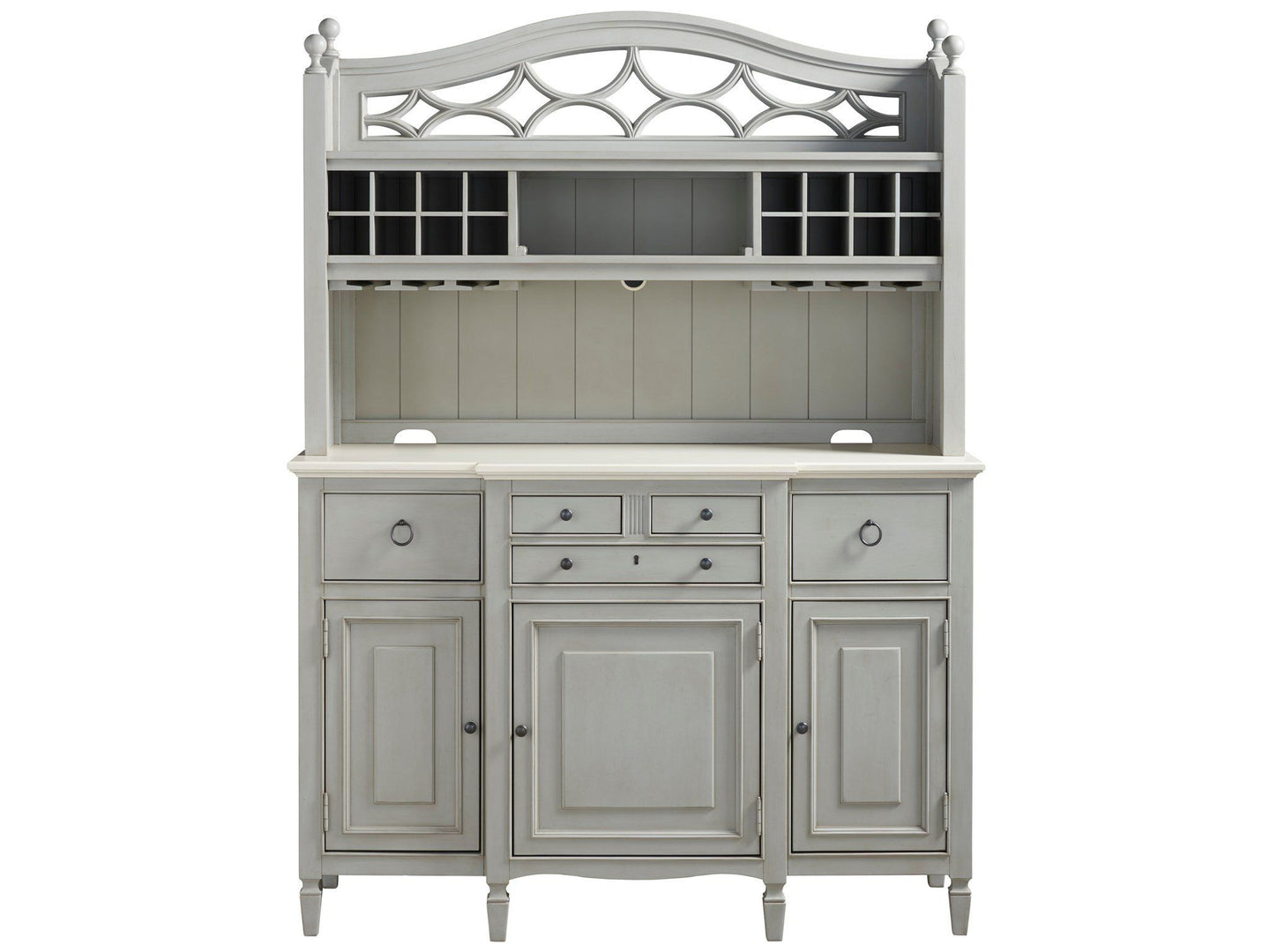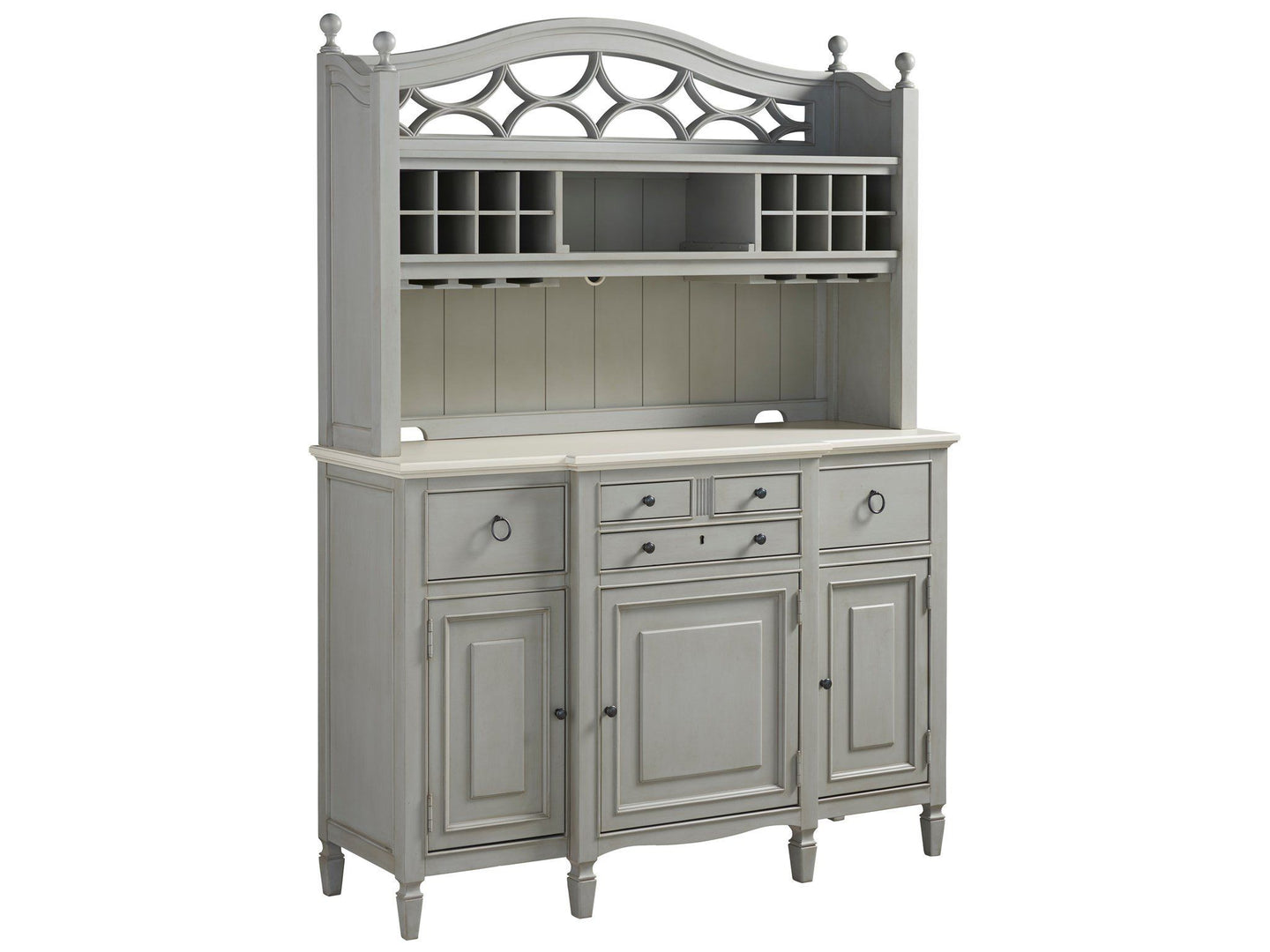 Summer Hill French Gray Summer Hill Serving Buffet with Bar Hutch Pearl Silver