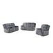 Upholstered in a soft grey combination fabric, the seating areas feature textured corduroy fronts with a gentle sheen, while the sides and back are wrapped in velvet-like fabric for a refined finish. Supportive high-density foam padding over S-springs ensures lasting comfort, while a solid tropical wood frame provides dependable durability. Each piece is designed for everyday lounging with a 300 lb weight capacity per seat. Assembly is required.