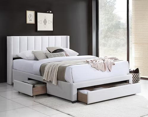 Upholstered in a soft-touch crème fabric, the Verona Luxe brings warmth and a light, airy feel to your space, effortlessly complementing a wide range of décor styles. Beyond its stunning design, this bed is built for practicality, featuring three spacious storage compartments—one conveniently located at the front and two on the sides—perfect for keeping bedding, pillows, or everyday essentials neatly tucked away.