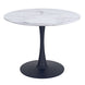 - Engineered wood table top with laminated veneer in a faux marble finish